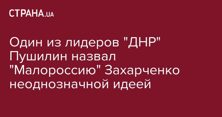 Один из лидеров "ДНР" Пушилин назвал "Малороссию" Захарченко неоднозначной идеей