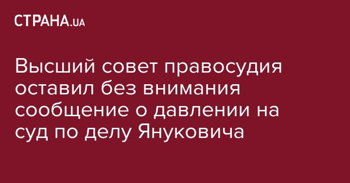 Высший совет правосудия (ВСП) принял решение оставить без рассмотрения сообщение главы Оболонского райсуда Киева Владислава Девятко о незаконном давления на суд по делу экс-президента Януковича со стороны других органов власти. Об этом пишет "Интерфакс-Украина".