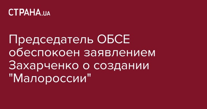 Председатель ОБСЕ обеспокоен заявлением Захарченко о создании "Малороссии"