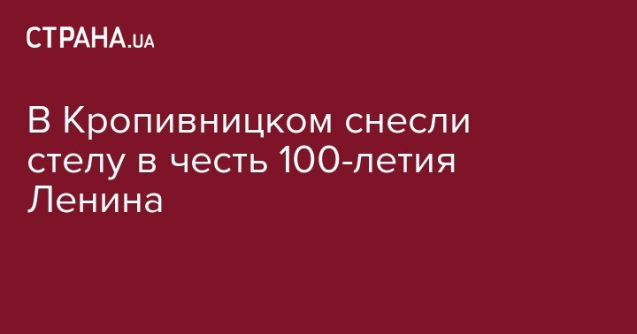 18 июля  в Центрaльном сквере Кропивницкого коммунальщики демонтировали стелу, установленную в честь 100-летия со дня  рождения Ленинa, сообщает УНН.