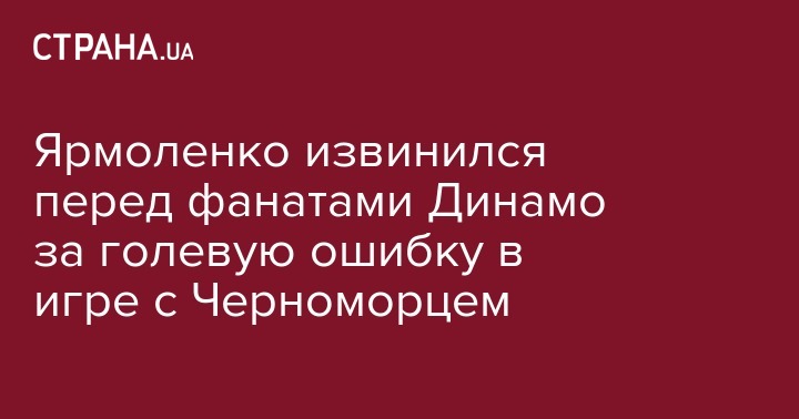 Ярмоленко извинился перед фанатами Динамо за голевую ошибку в игре с Черноморцем