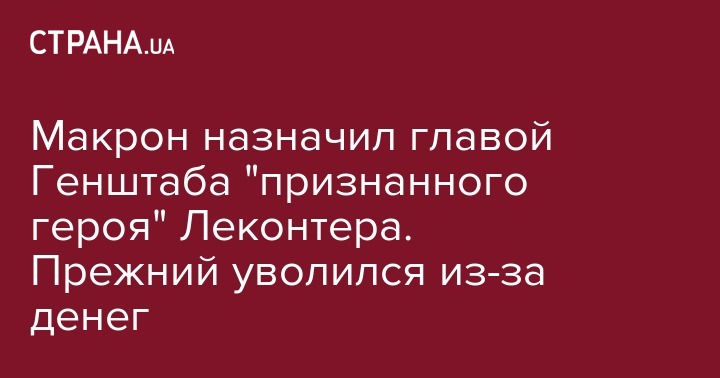 Макрон назначил главой Генштаба "признанного героя" Леконтера. Прежний уволился из-за денег