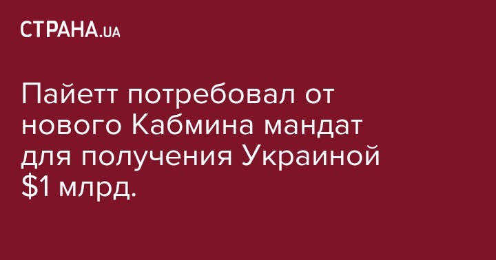 Пайетт потребовал от нового Кабмина мандат для получения Украиной $1 млрд.