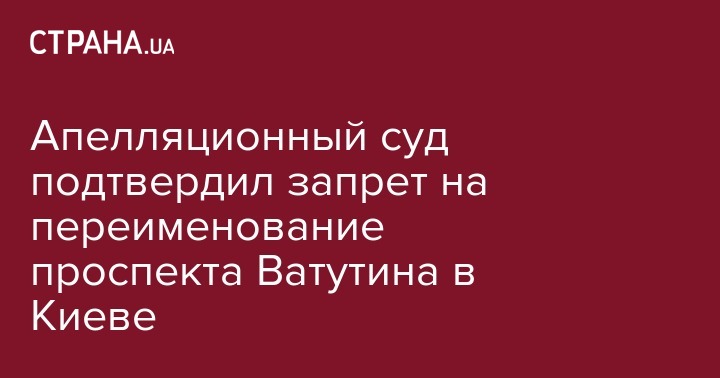 Апелляционный суд подтвердил запрет на переименование проспекта Ватутина в Киеве