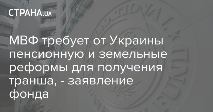 МВФ требует от Украины пенсионную и земельные реформы для получения транша, - заявление фонда
