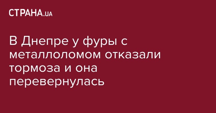 В Днепре у фуры с металлоломом отказали тормоза и она перевернулась