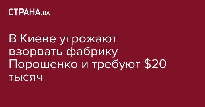 В Киеве угрожают взорвать фабрику Порошенко и требуют $20 тысяч