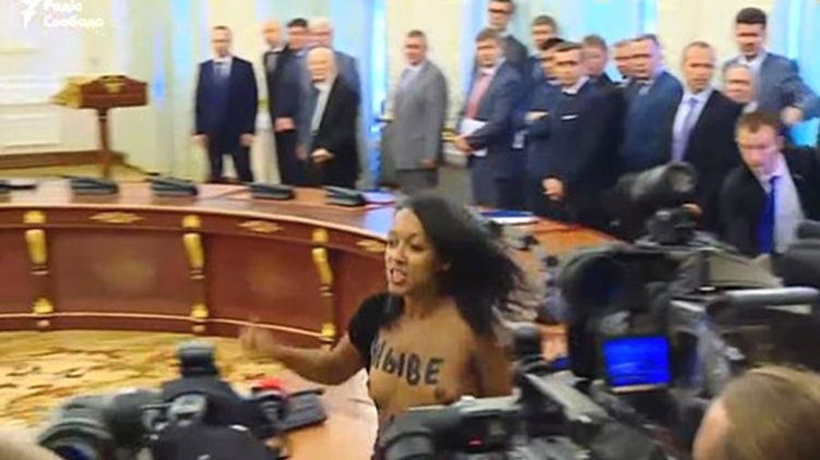 В Киеве активистка Femen устроила стриптиз перед Лукашенко и Порошенко, Радио Свобода