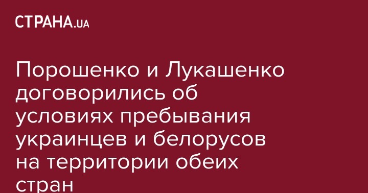 Президент Украины Петр Порошенко и президент Беларуси Александр Лукашенко договорились о пребывании украинцев и белорусов на территории обеих стран на равных условиях. Об этом пишет "Интерфакс-Украина".