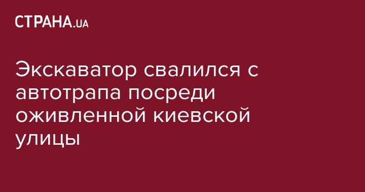 Экскаватор свалился с автотрапа посреди оживленной киевской улицы