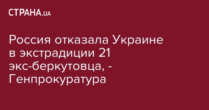 Правоохранительные органы России отказали Украине в экстрадиции 21 бывшего сотрудника "Беркута", которые подозреваются в расстреле 48 активистов Евромайдана. Об этом сообщил начальник департамента специальных расследований ГПУ Сергей Горбатюк, пишут "Украинские новости".