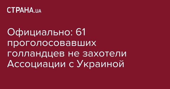Напомним, что 6 апреля в Нидерландах состоялся консультативный референдум относительно Соглашения об ассоциации Украины с Европейским Союзом.