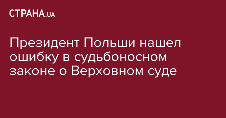 Президент Польши Анджей Дуда обнаружил нарушения законодательных норм в законе о Верховном суде. Об этом сообщает "Укринформ".