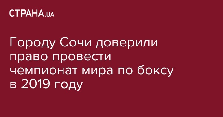 В понедельник, 25 июля 2017 члены Исполкома Международной ассоциации бокса (АИБА) предоставили право проведения чемпионата мира по боксу 2019 года российскому городу Сочи. Также в 2018 году в Москве пройдет конгресс АИБА. Об этом сообщает Интерфакс.