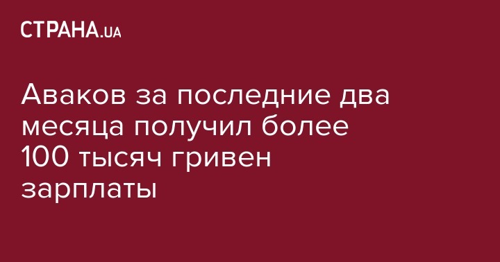 Зарплата Авакова за декабрь 2016 года составила 42,9 тыс. гривен, за январь - 39,2 тыс. гривен, за февраль 53,7 тыс. гривен, за март - 42,7 тыс. гривен, за апрель - 52 тыс. гривен.