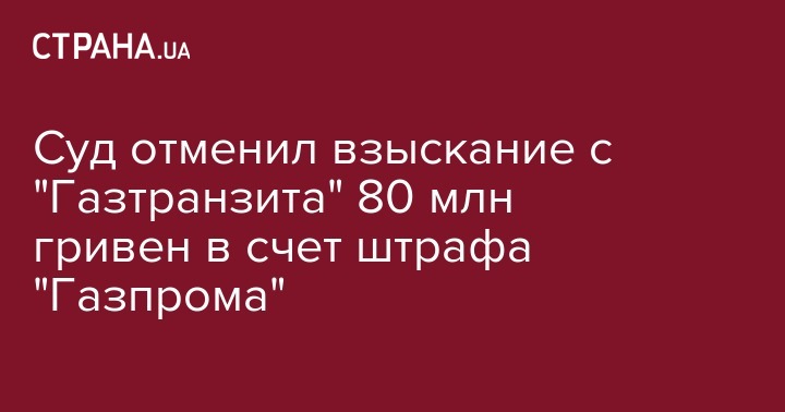 Киевский апелляционный хозяйственный суд отменил взыскание 80 млн гривен с киевской компании "Газтранзит", которая частично принадлежит российскому "Газпрому". Решение суда от 17 июля обнародовано в Едином госреестре.