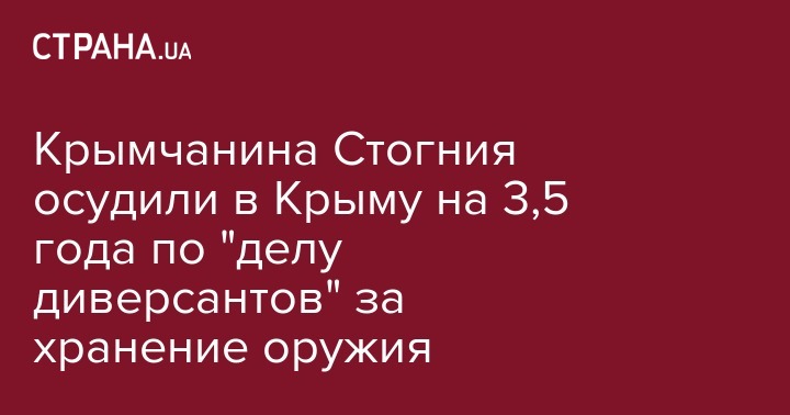 Крымчанину Алексею Стогнию, которого задержали в ноябре 2016 года по подозрению в "организации диверсий на объектах инфраструктуры" Крыма, суд приговорил к 3,5 годам лишения свободы. Об этом сообщает "Крымская правозащитная группа".