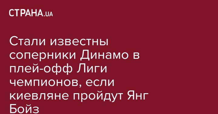 Потенциальными соперниками Динамо являются португальский Спортинг, немецкий Хоффенхайм, французская Ницца (если обыграет Аякс) и победители пар Стяуа (Румыния) - Виктория (Чехия) (первый матч 2:2) , Брюгге (Бельгия) - Истанбул (Турция) (первый матч 3:3) и АЕК (Греция) - ЦСКА (Россия) (первый матч 2:0 в пользу ЦСКА).