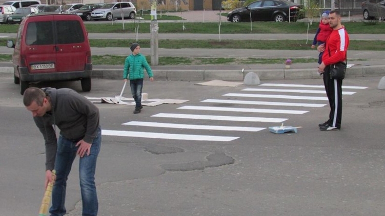 На Осокорках жители сами нарисовали пешеходный переход, рассчитывая на то, что теперь водители начнут реагировать на установленный рядом с детским садом дорожный знак. Об этом сообщает "Наш Киев".