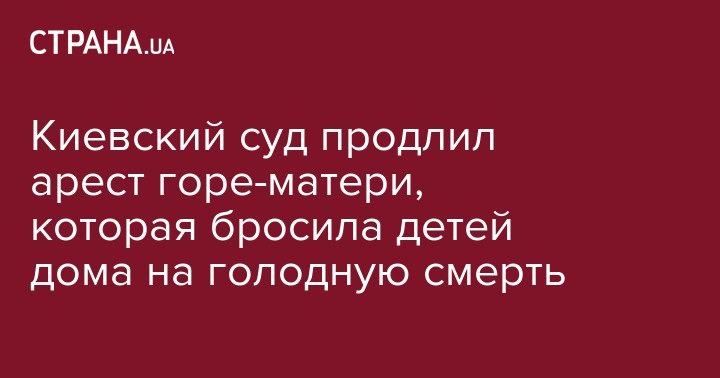 Голосеевский районный суд Киева продлил еще на 2 месяца арест 22-летней киевлянки, которая на 9 дней оставила без присмотра двух своих маленьких детей, один из которых умер от голода. Об этом сообщает пресс-служба столичной прокуратуры.