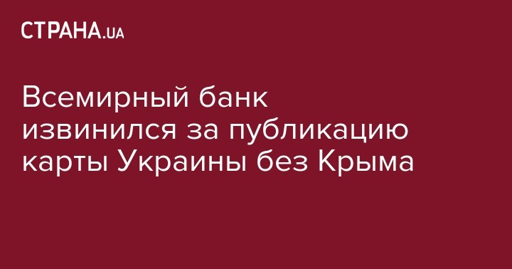 Всемирный банк извинился за публикацию карты Украины без аннексированного Крыму в отчете "Конфликт в Украине: социально-экономические последствия внутреннего перемещения и возврата ветеранов" от 1 мая 2017 года. Об этом говорится на странице World Bank Ukraine в Facebook.