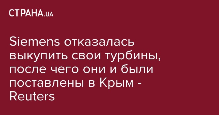 Siemens отказалась выкупить свои турбины, после чего они и были поставлены в Крым - Reuters