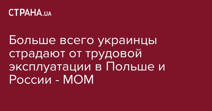 "С января по июнь текущего года МОМ оказала помощь 639 лицам, пострадавшим от торговли людьми, что на 30% больше, чем за аналогичный период 2016 года. Более 90% пострадавших в результате трудовой эксплуатации, более 80% пострадавших на территории соседних государств, преимущественно Российской Федерации и Польши", - сообщается в пресс-релизе ко дню борьбы с торговлей людьми, который прошел 30 июля.