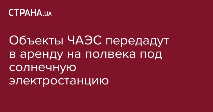 Фонд государственного имущества (ФГИ) выставил для предоставления в аренду часть сооружений Чернобыльской АЭС (Припять, Киевская область) под фотоэлектрическую солнечную электростанцию мощностью 100 МВт. Об этом говорится в сообщении на сайте ФГИ.