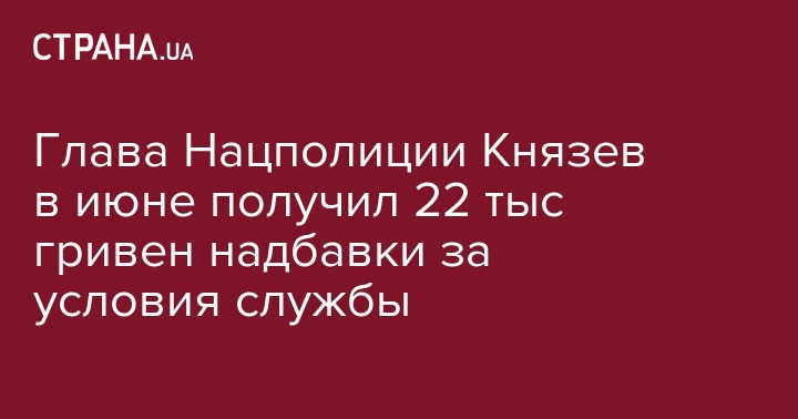 Глава Нацполиции Князев в июне получил 22 тыс гривен надбавки за условия службы