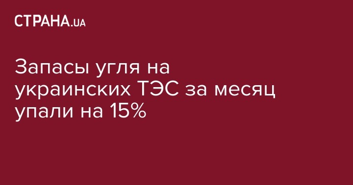 Запасы угля на складах тепловых электростанций (ТЭС) Украины за июль сократились на 15,4% (на 384,6 тыс. тонн) – до 2 млн 117,4 тыс. тонн. Об этом сообщает "Интерфакс-Украина" со ссылкой на данные Министерства энергетики и угольной промышленности.