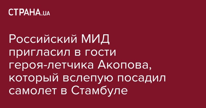 МИД РФ пригласил в Россию украинского пилота Александра Акопова, который вслепую посадил самолет, разбитый градом в Стамбуле. Об этом говорится на официальной странице российского МИД в Facebook.