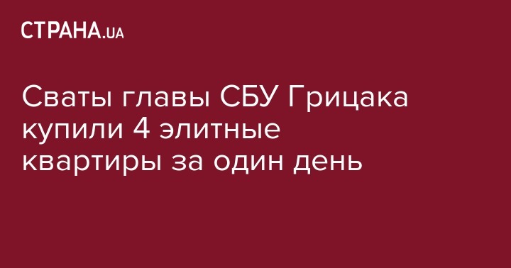 "Наши гроши" сообщают, что сватья главы СБУ меньше чем через полгода после его вступления в должность, купила четыре элитных квартиры за один день. Данные получены из Государственного реестра прав на недвижимое имущество.