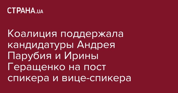 "Мы проголосовали, что коалиция поддерживает Андрея Парубия в спикеры парламента и Ирину Геращенко в первые вице-спикеры", - написал он на странице в Фейсбуке.