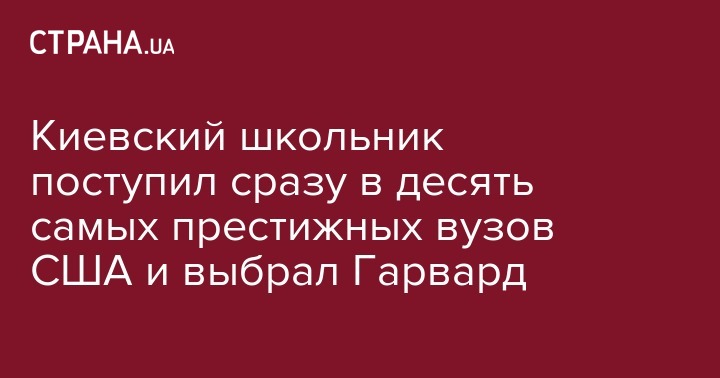 Киевский школьник, выпускник столичного финансово-правового лицея Георгий Солодко поступил сразу в 10 престижных вузов США. Об этом пишет KP.ua.
