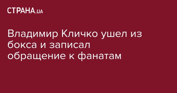 В четверг, 3 августа, украинский боксер Владимир Кличко заявил, что уходит из бокса. Видеообращение о завершении спортивной карьеры он обнародовал в Twitter.