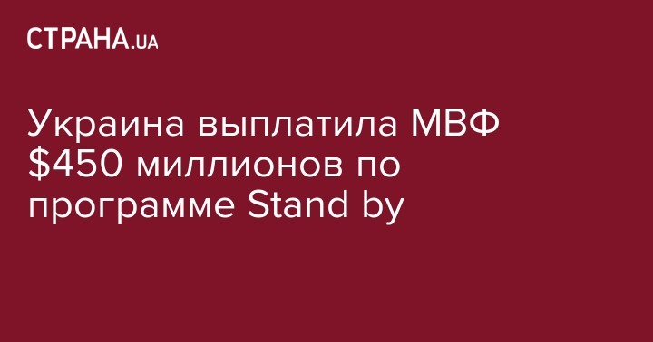 Украина выплатила Международному валютному фонду $450 млн по программе Stand by от 2014 года. Об этом сообщает "Громадське"
