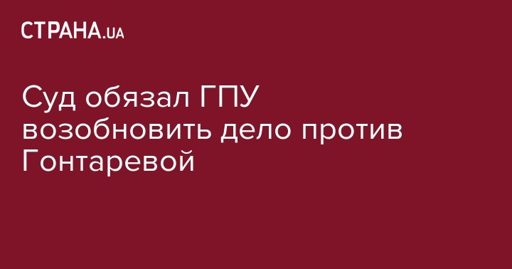 Печерский районный суд города Киева обязал Генеральную прокуратуру Украины возобновить следствие против экс-главы Нацбанка Валерии Гонтаревой. Об этом говорится в постановлении суда.