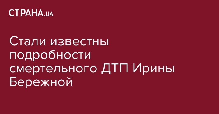 Стали известны подробности гибели в ДТП экс-депутата Верховной Рады Украины Ирины Бережной. Автомобиль, в котором ехал водитель, погибшая и ее ребенок попал в ДТП в 1.30 ночи. Трагедия произошла на трассе между хорватскими городами Масленица и Поседарье. Об этом сообщают "Вести" со ссылкой на местные СМИ.