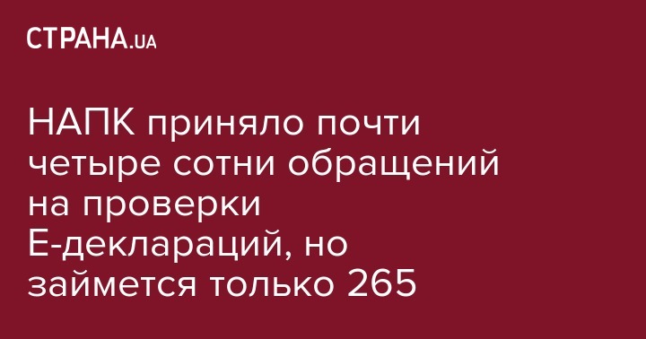 НАПК приняло почти четыре сотни обращений на проверки Е-деклараций, но займется только 265