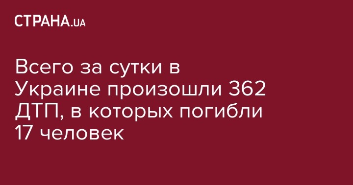 За сутки (с 5 по 6 августа) в Украине в 362 дорожно-транспортных происшествиях погибли 17 человек, 129 - травмированы. Об этом сообщается на странице Национальной полиции Украины в Facebook.