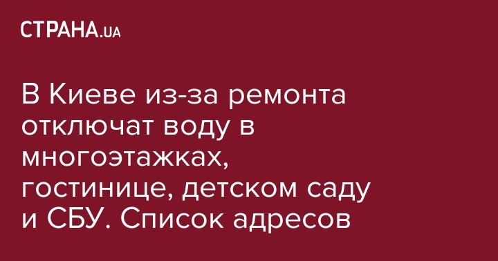 В Киеве из-за ремонта отключат воду в многоэтажках, гостинице, детском саду и СБУ. Список адресов