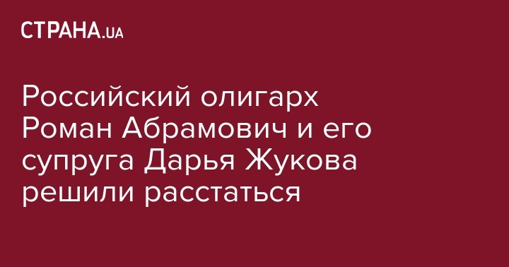 Российский олигарх Роман Абрамович и его супруга Дарья Жукова решили расстаться