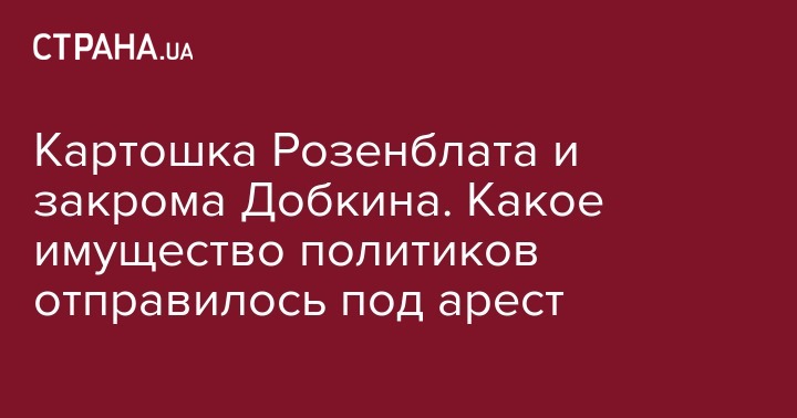 НАБУ удалось добиться ареста следующего имущества Розенблата: жилого дома в Житомире общей площадью 700,6 кв. м; половины дома в Житомирской области площадью 225,4 кв. м; двух земельных участков площадью 0,75 и 1,6583 га; картофелехранилище площадью 1303 кв. м; комплекс зданий и сооружений, состоящий из 27 объектов общей площадью 13481,1 кв. м; акции Галиевского маслозавода; доли в уставном капитале ООО "Оберег", ООО "Миропольский бекон" и ООО "Корецкий аграрий", а также деньги, хранящиеся на счетах в ПриватБанке и Сбербанка (в е-декларации за 2016 на счетах было 124 тысяч 725 гривен и 54 479 долларов соответственно).