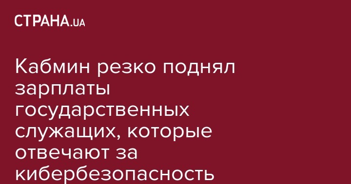 Кабинет Министров увеличил на 20% оклады госслужащим, ответственным за кибербезопасность, киберзащиту и безопасность информационных технологий. Об этом говорится в сообщении пресс-службы правительства.