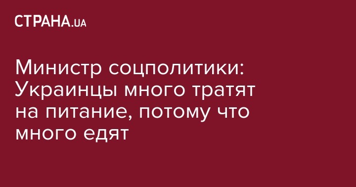 Министр социальной политики Андрей Рева заявил, что украинцы тратят половину заработка на питание, потому что много едят.