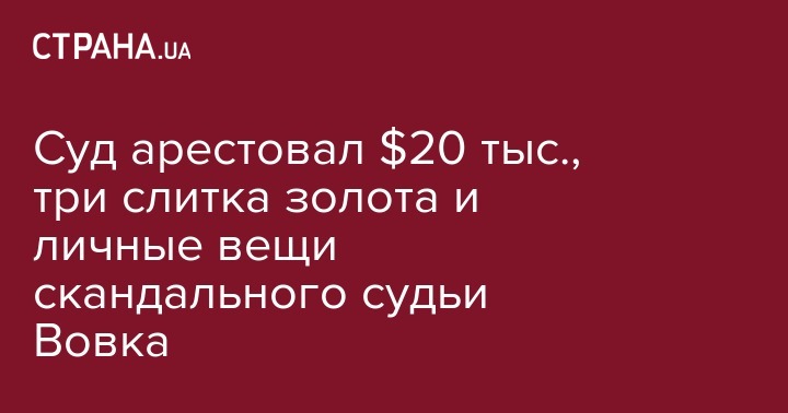 Галицкий районный суд Львова арестовал 20 тыс. долларов наличными, три слитка золота по 50 граммов, документы и личные вещи председателя Окружного административного суда города Киева Павла Вовка. Об этом сообщает ”Слово и Дело”.