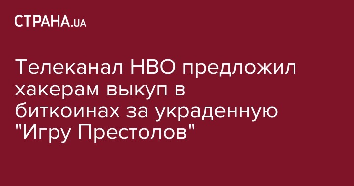 Руководство американского кабельного телеканала HBO предложило $250 тыс. в биткоинах хакерам, которые похитили 1,5 терабайта данных связанных с сериалом "Игра престолов". Об этом передает "Интерфакс" со ссылкой на MarketWatch.