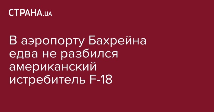 Истребитель ВВС США F-18 совершил жесткую посадку в международном аэропорту Бахрейна, передает Reuters.