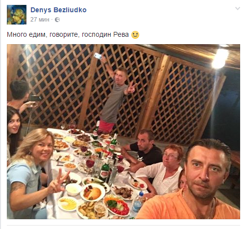 Журналист Денис Безлюдько поместил фото своего застолья и подписал его.