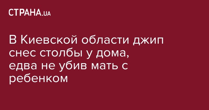 В Киевской области джип снес столбы у дома, едва не убив мать с ребенком